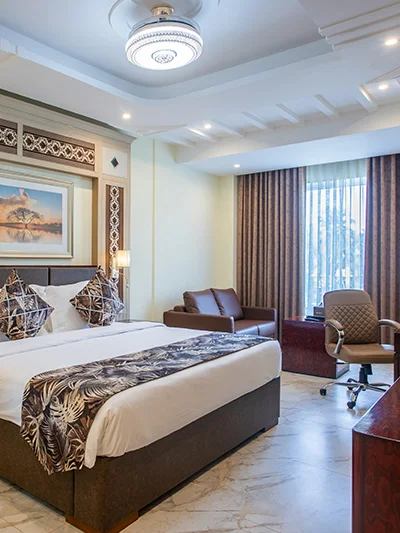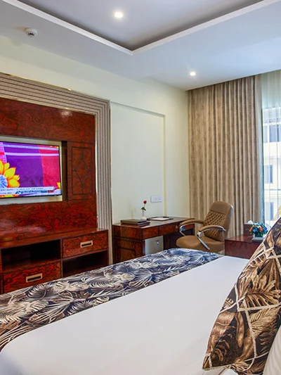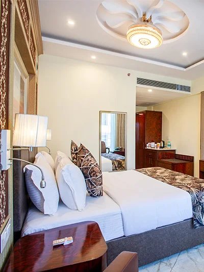 +91 879 990 6240The Superior Room at The Avenue Grand presents an opulent and cozy retreat. This meticulously designed space offers guests a serene and tranquil ambiance, making it an ideal choice for those seeking a peaceful getaway.